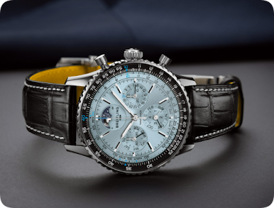 Breitling calls it “ice blue sunburst,” and we call it “the reason everyone will ask to see your wrist.” It’s not that cheap, flat blue you see on drugstore watches—this shimmers like sunlight on a frozen lake. No loud red accents (thank goodness); just subtle blue details that keep it elegant, not flashy.